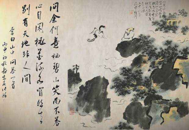 即便真是如此,他也是既来之,则安之,心自闲。这种闲,与王维的“我心素已闲,清川澹如此”的闲异曲同工。如果换做王维问他,太白兄,尔为何要来隐居于此?李白或许同样笑而不答,但与面对俗人的笑而不答并不相同。作为同道中人,笑而不答,现在流行的三个字来说就是,你懂得。因为懂,所以王维不回如此发问。