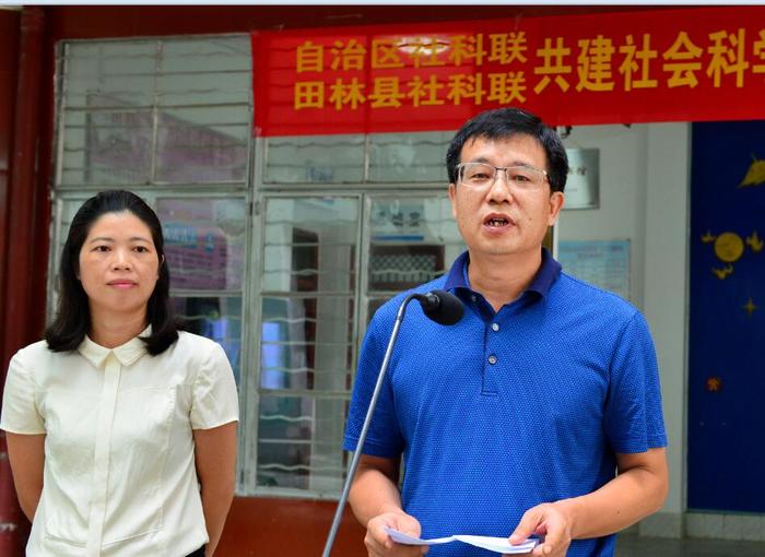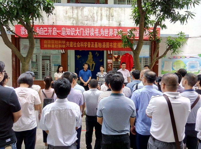 7月21日,自治区社科联与田林县共建社会科学普及基地签约揭牌仪式在我馆举行,田林县委常委、宣传部部长、副县长蒋桂红参加活动,并与自治区社科联副巡视员刘 俊为基地揭牌。此次活动,参加人员为县直有关部门各一名领导及第县第二届社科委员近60人参加。