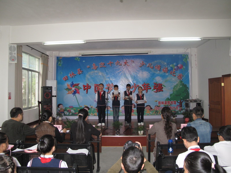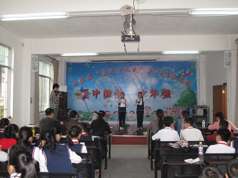 2017年10月21日上午,为营造党的十九大胜利召开浓厚氛围,抒发少儿爱国主义情怀,同时弘扬社会主义核心价值观,县图书馆在县图书馆四楼多功能室举办少儿朗读比赛活动。