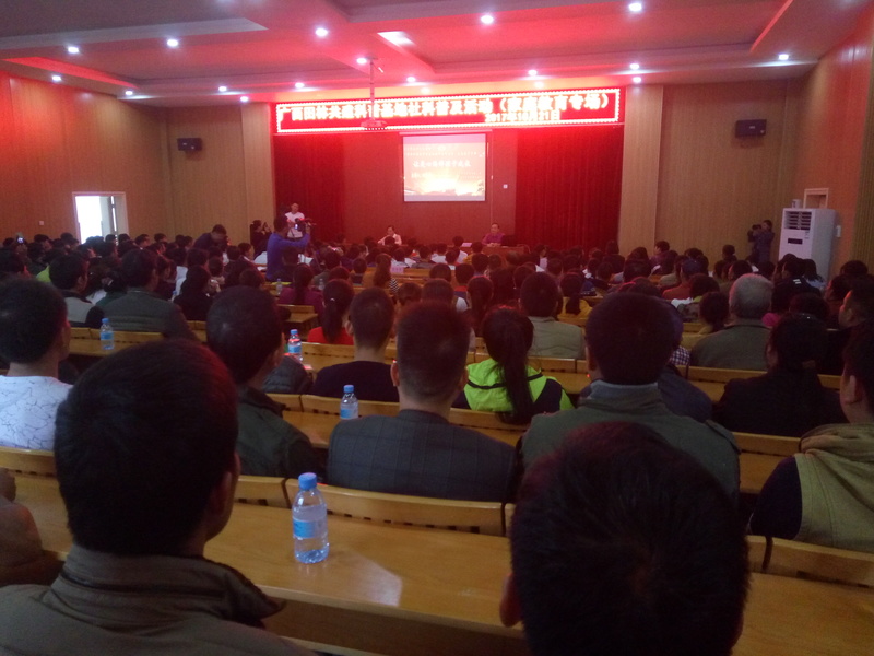 本次活动由黄艳琼县委宣传部副部长主持,百色市文明办主任、百色干部学院兼职教授、广西艺术学院客座教授、百色市音乐家协会主席田茂华主讲。主座的主要内容为:良好的家庭教育与融洽的亲关系,能更好地培养青少年学生的家庭角色和社会责任感,并针对初中生正处于叛逆,如何改善亲子之间的关系支招,帮助他们学习与父母和谐相处,从中获得心理和谐的发展、潜能的充分发挥以及人格的健康塑造,增强家庭教育效果,在一定程度上为学校教育增质增效,受到学生、学校、家庭的欢迎。