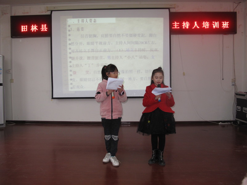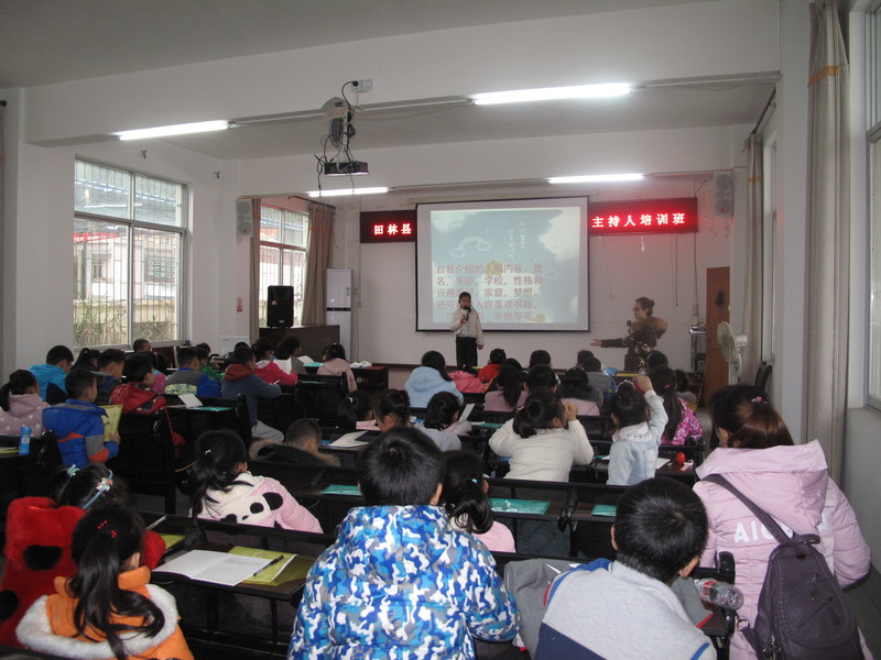 此次培训班由田林县电视台主持人廖 珍担任主讲老师。廖老师以主持人的专业技巧向孩子们从自我介绍、发正音、绕口令、站姿、坐姿等着手逐步展开。互动环节中,孩子们从开始的胆怯到争先恐后踊跃登台展示才艺,积极互动,现场气氛热烈,兴趣盎然,纷纷表示此培训班对他们在即将来临的回乡当春节晚会小主持人的帮助极大。