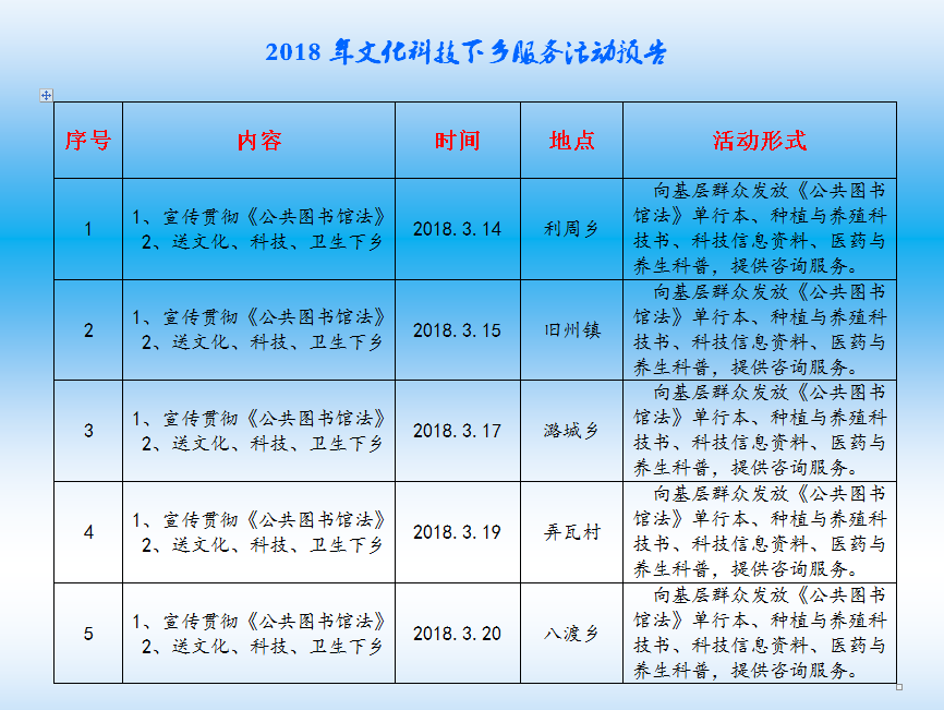 2018年文化科技下乡服务活动预告
