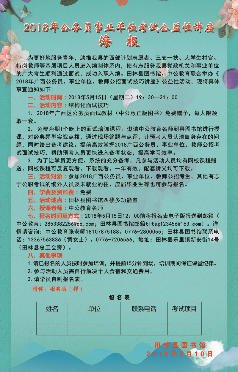 2018年公务员事业单位考试公益性讲座活动预告