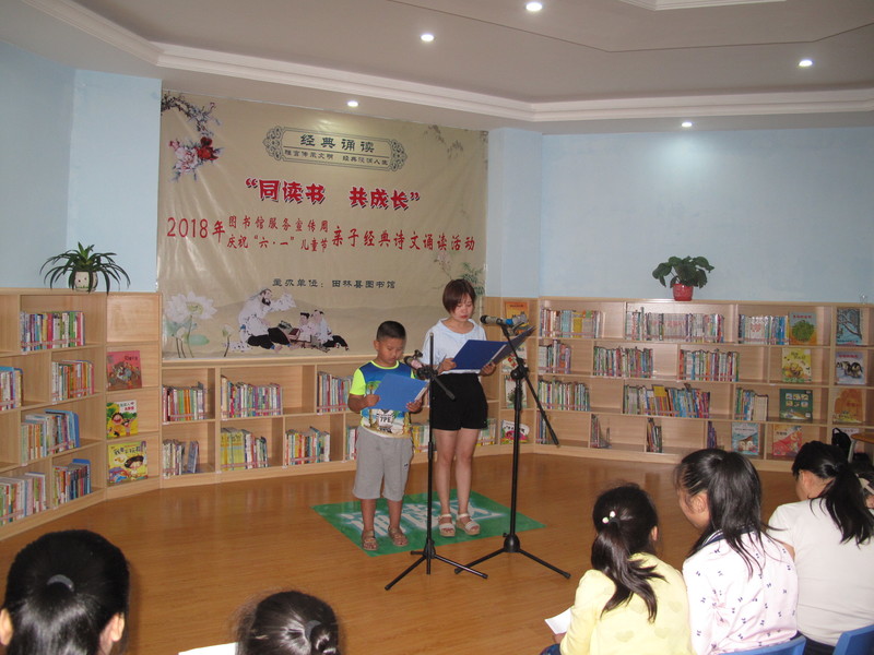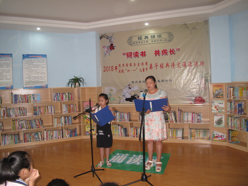活动,以亲子组合诵读经典诗文方式进行。通过活动,正确引导家长正确认识到自己的示范作用在孩子的成长中的重要作用,认识到亲子共读不仅可以帮助孩子培养阅读的兴趣,培养孩子的自信,形成良好的阅读习惯,而且是家长与孩子进行情感交流的有效方法。同时,还能营造家庭成员间相互鼓励,互动互带“同读书,共成长”阅读氛围。通过提高家长亲子阅读认识,馆家携手,共同促进全民阅读推广,传承弘扬中华优秀的传统文化。