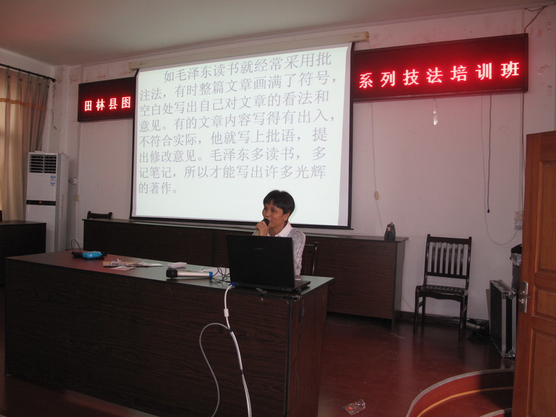 本次培训班邀请了原乐里一小高级老师黄乙梅担任主讲,授课内容为“批注式、提纲式、摘录式、体会式、书签式、卡片式”等6种读书笔记方法。课中,黄老师列举了毛泽东主席常用的读书笔记方式,并运用范文详细、系统地讲解了6种读书笔记方法,深入浅出,逻辑性强。同时重视少儿实践性,课中让学员到少儿阅览室挑选一本自己喜欢的书阅读并做读书笔记,老师巡视指导,理论与实践结合,让学生更容易理解和吸收,并强调读书要做到:眼到、口到、心到、手到,阅读才有收获。此举,将对学生今后的阅读学习具有指导性意义,对提高小学生作文水平起积极的作用,深受学生和家长的欢迎,报名参加培训的学生爆满。