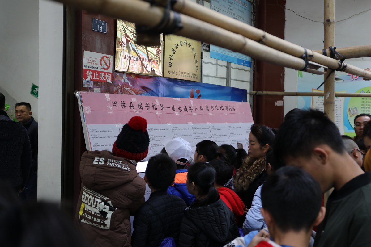 元月5日上午8点,在我馆内人头攒动,大门外还排起人群长龙。原来是来自各中小学校的150多位小朋友在此排队签到、领取书法比赛内容,即将参加我馆举办的第一届未成年人即席书法比赛。