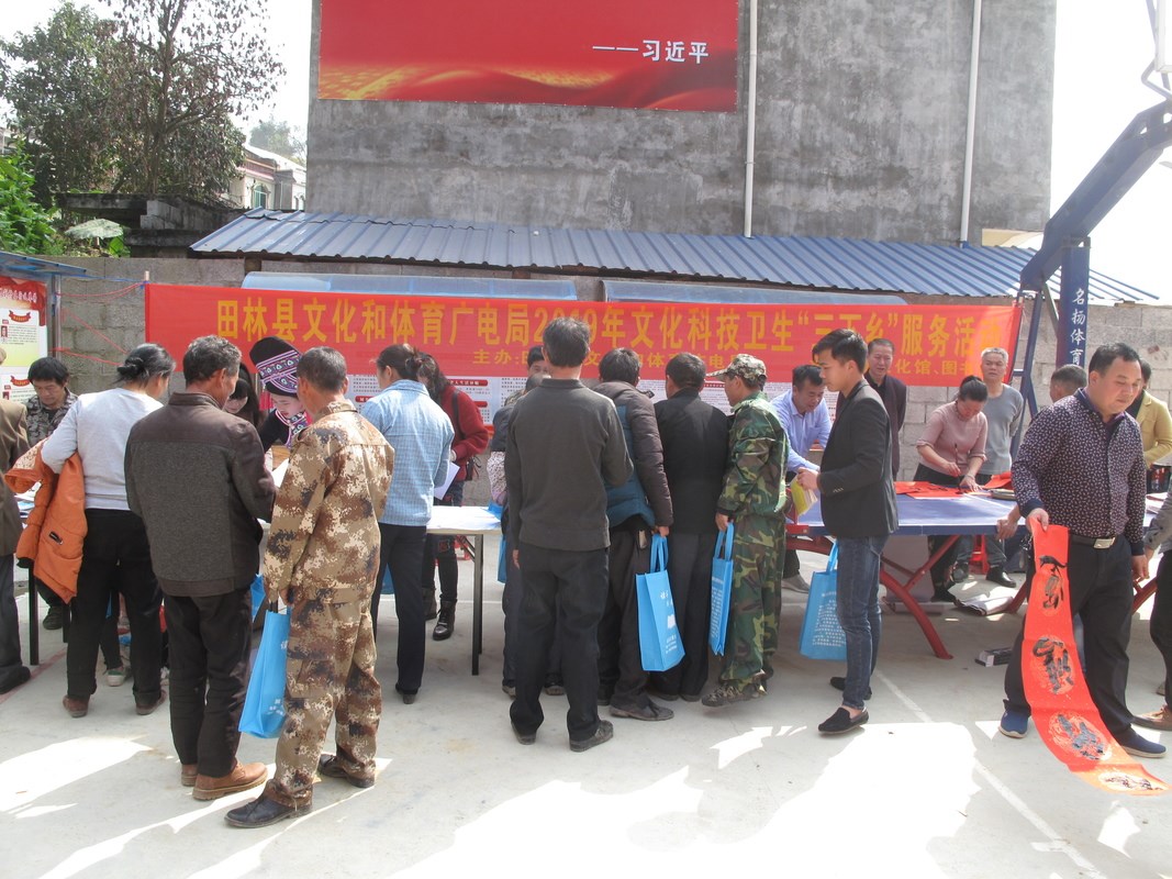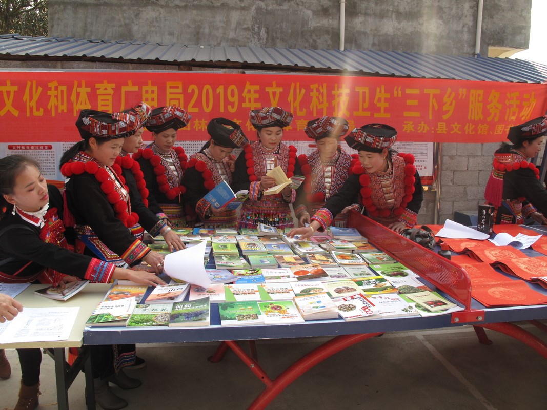 元月28日,由局文广局主办,本馆与县文化馆承办的“三下乡”服务活动在八渡瑶族乡那利村举行。本次活动,值庆祝那利村级公共服务中心和戏台落成使用的同时开展,来自那利村民近500人参加了活动。
