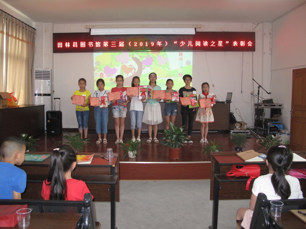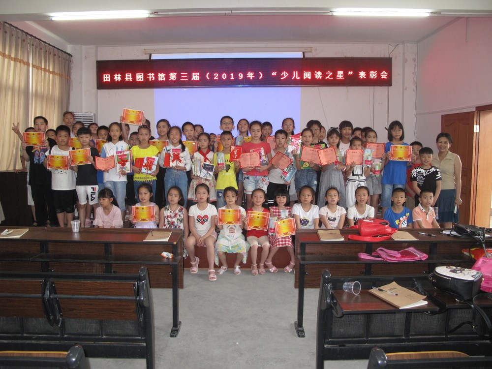 为鼓励少儿多读书、读好书,在“4.23”世界读书日即将来临之际,田林县图书馆对2018年4月至2019年3月为期一年的借阅服务中,对每位持证少儿读者借阅量进行统计并排名,评选出以李嘉慧等8位少儿读者,授予第三届“少儿阅读之星”荣誉称号。其中李嘉慧同学年借阅量为75本,排名第一。