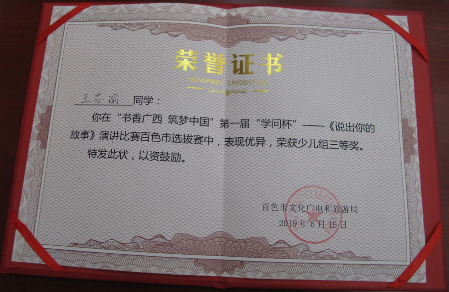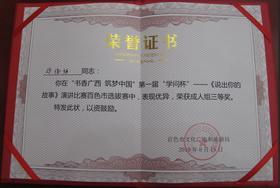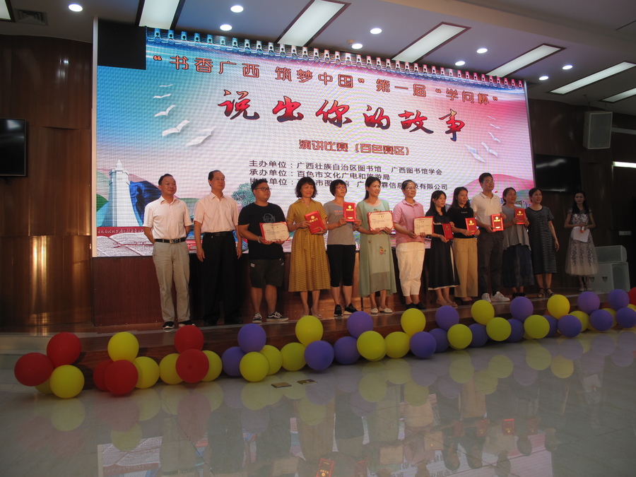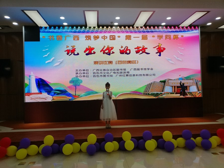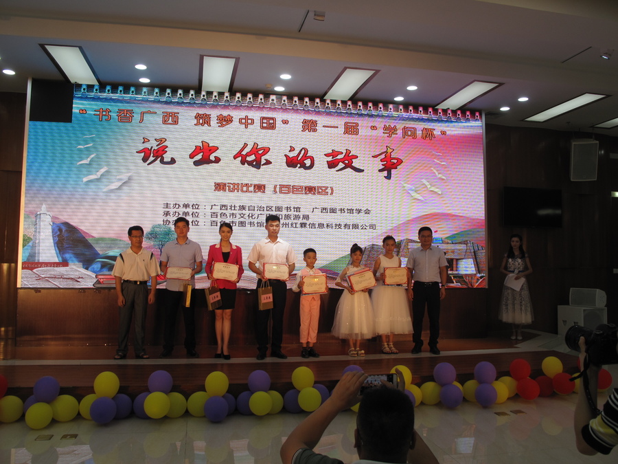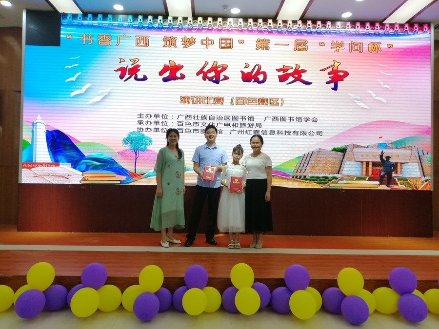 6月15日,“书香广西.筑梦中国”第一届“学问杯”《说出你的故事演讲比赛》(百色赛区)在百色举行。本次活动由广西壮族自治区图书馆和广西图书馆学会联合主办,百色市文化广电和旅游局承办。我馆推荐了县统战部邓伟旭同志代表田林参加了成人组的比赛,推荐乐里第一小学王芯瑜同学代表田林参加了少儿组的比赛,两位选手均获三等奖。田林县图书馆获优秀组织奖。