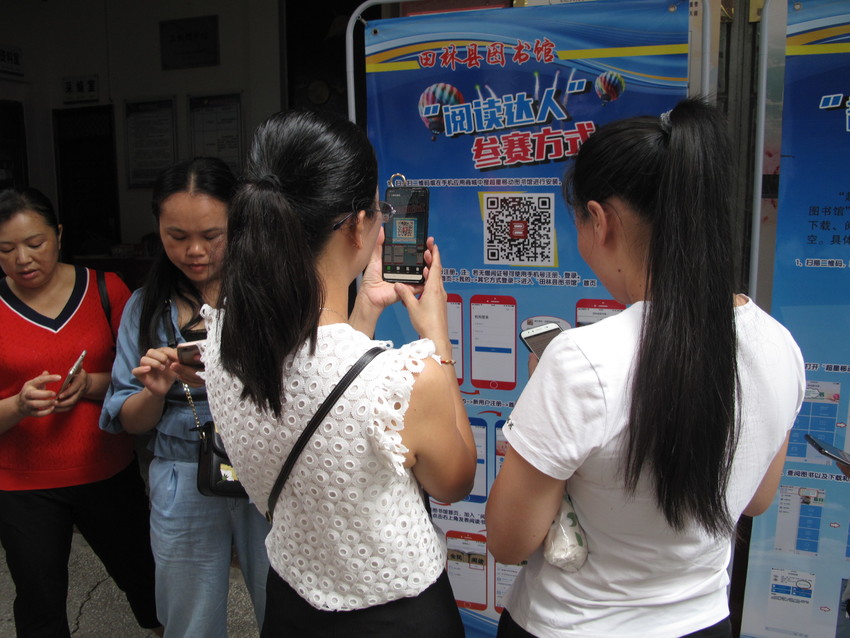 活动期间,家长们和同学们,带着对移动图书馆的好奇心前来咨询,大家纷纷拿起手机扫描易拉宝宣传上移动图书馆的二维码下载安装移动图书馆,为让读者顺利安装,图书馆管理员对读者就如何下载、安装、注册、使用“超星移动图书馆”进行简单的培训。特别要提的是,最新版本的“超星移动图书馆”,不仅有海量的图书提供广大市查询阅读,还可以在“阅读达人”的栏目中阅读相应书籍,参加一系列的配套阅读排名活动,赢取排名积分,获阅读奖励。