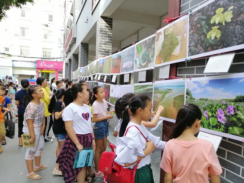 活动现场观展的小朋友和家长们被照片中野生动植物的奇特和美丽吸引,一个个瞪大了好奇的眼睛,时不时发出惊叹声。