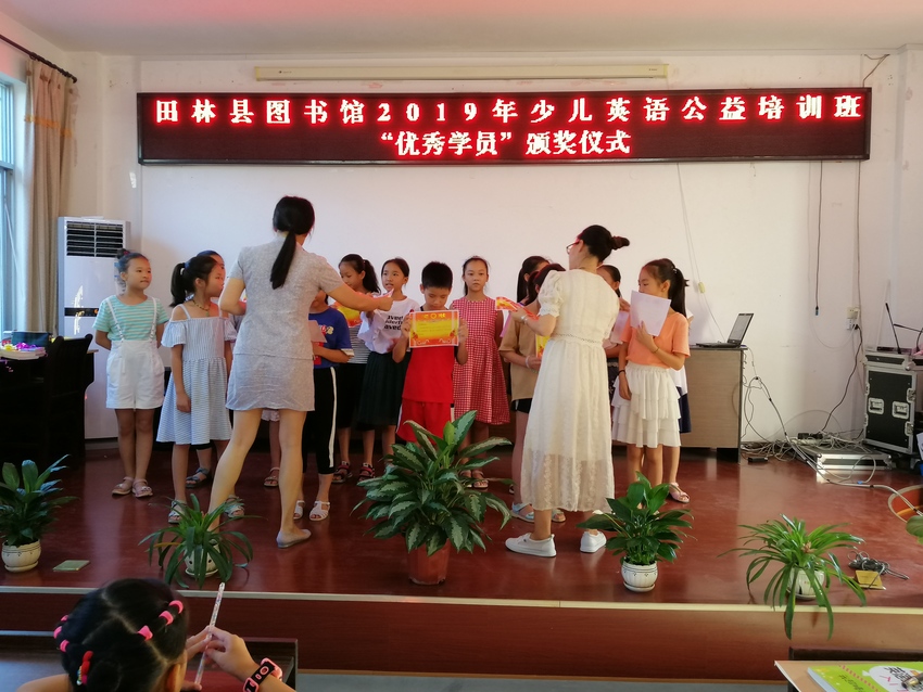 为了让少儿度过一个愉快充实的暑假,我馆本着让更多的少年儿童走进图书馆、利用图书馆的宗旨,7月24至28日,我馆聘请了乐里一小教师方海荣在我馆四楼多媒体功能室举办为期5天的少儿英语公益培训班,课堂上所需的所有教学用品用具都由我馆购买发放,共有56个小朋友参加培训。 此次培训,方老师结核《英语国际音标入门》课本,针对课程重点和少儿英语的薄弱环节,以英语音标、课文重点句型的用法为重点,由易到难,运用比喻、拟人、互动等方法入手,循序渐进的给孩子们进行授课。进一步对48个音标进行了系统教学,强化课文单词认知,规范单词书写和重点句型的使用。为了让英语教学充满趣味性,老师以个别操练、分组练习、集体操练等多种形式,采用动静结合,将趣味性融入教学中,激发青少年对英语的兴趣,不仅让少儿既学会了英语口语的正确发音技术要领,正确拼读单词、词组和句子的使用,又培养了他们开朗的性格和主动团结他人的品格。 英语公益培训班老师方海荣: