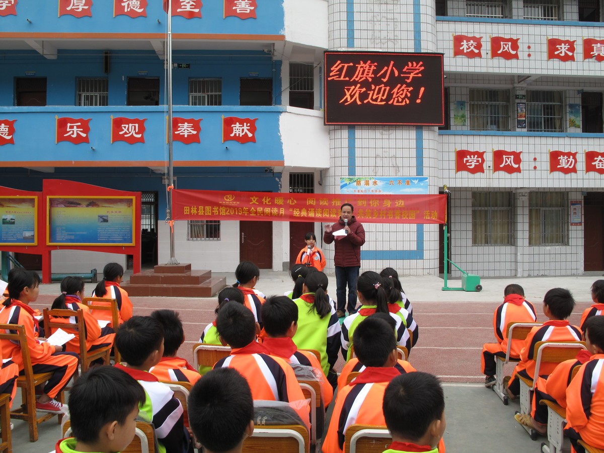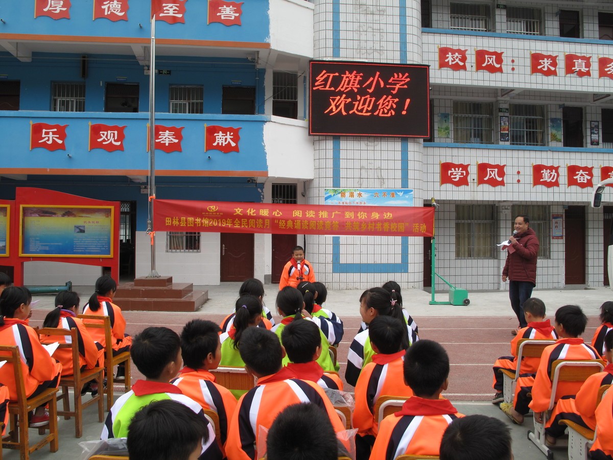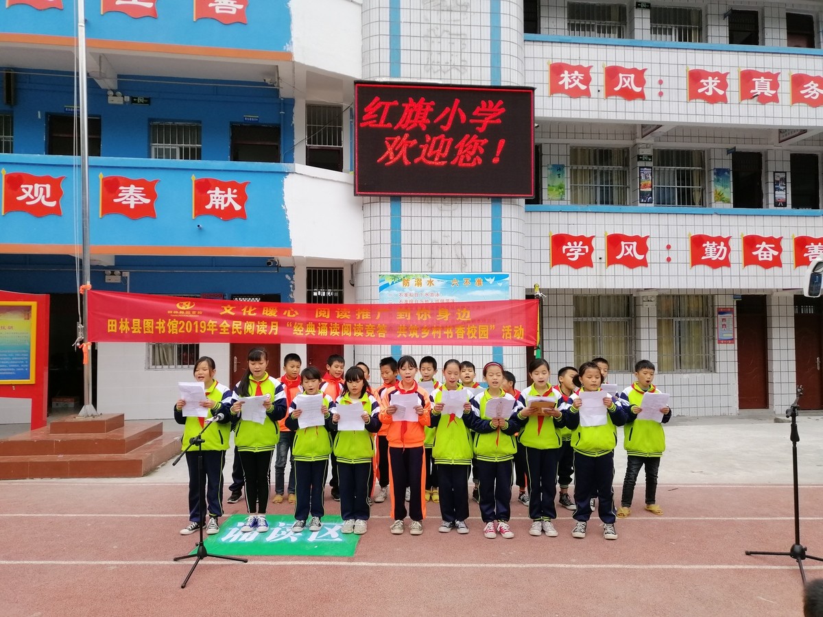 11月29日,在2019年全民阅读月即将来临之际,为拓展乡村小学学生的阅读面,培养乡村少儿阅读兴趣,田林县图书馆到潞城乡红旗村小学,与学校联合开展以“经典诵读阅读竞答 共筑乡村书香校园”为主题的阅读活动,全校77名师生参加活动。