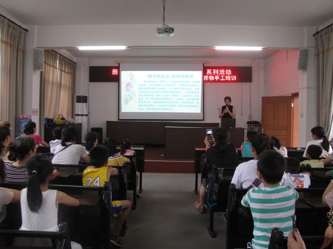 本次活动,县图书馆聘请当地民间传统手工技师张桂良担任传授师。活动分为讲述“猴子抱金瓜”传说故事、介绍工艺品民俗文化与制作技术培训、亲子体验手工等3个环节。活动第一个环节,张技师讲述了“猴子抱金瓜”始于猴子感恩的传说故事,通过故事,传播“真、善、美”道德风尚,激起参加活动亲子们的兴趣。接着,技师对“猴子抱金瓜”工艺品进行介绍,类型分为单猴抱瓜、母背子抱瓜、双猴抱瓜、3只至6只猴抱瓜等。其中3只至6只“猴子抱金瓜”有“三羊开泰、四季发财、五福临门、六六大顺”的延伸意义。工艺品每个组成部位还有其不同的象征含意,其中猴子代表智慧、腰带象征地位、金瓜象征财富、尾巴象征长寿等寓意,总体意义为:智慧、进步、平安、福寿,体现人们向往美好生活愿意。