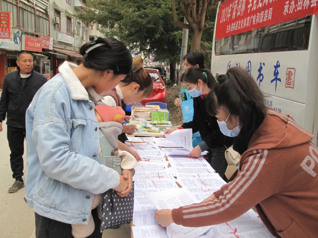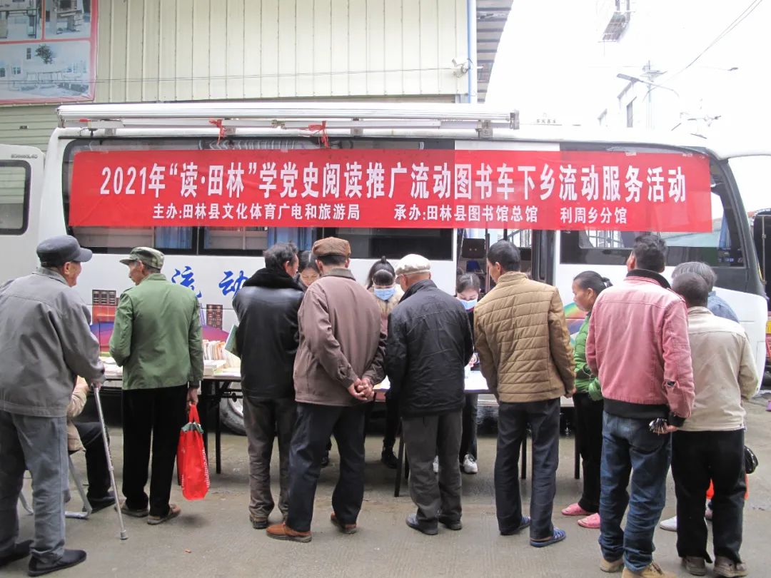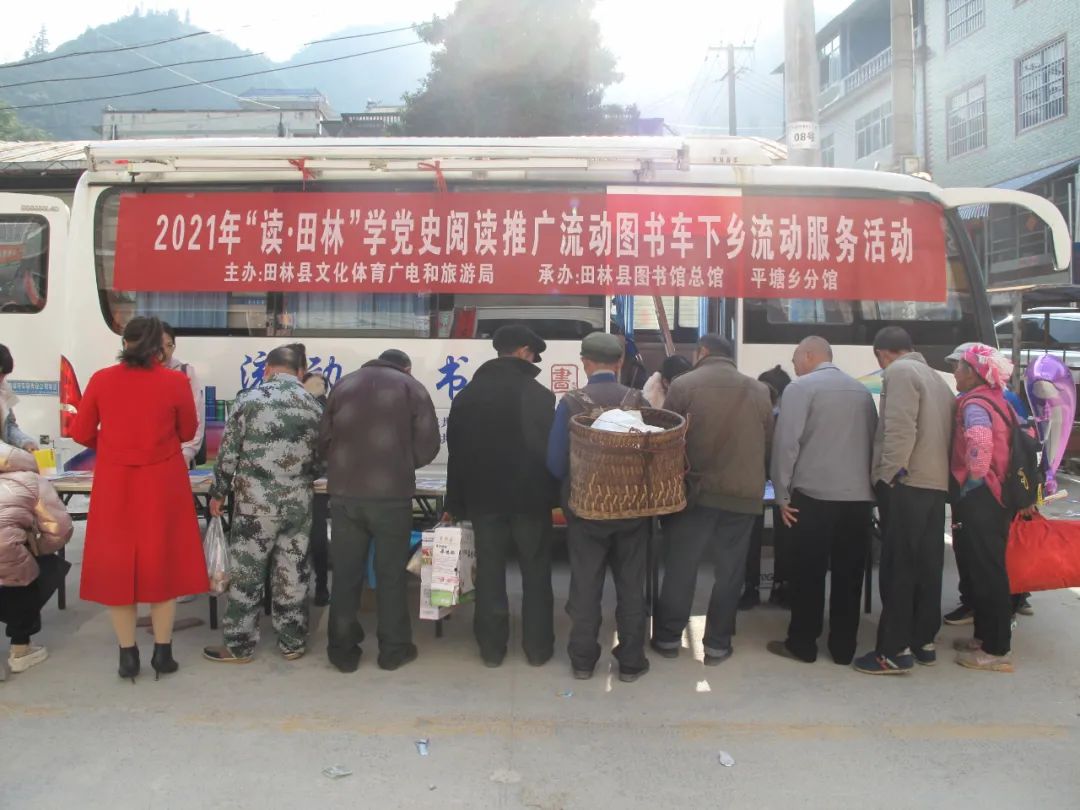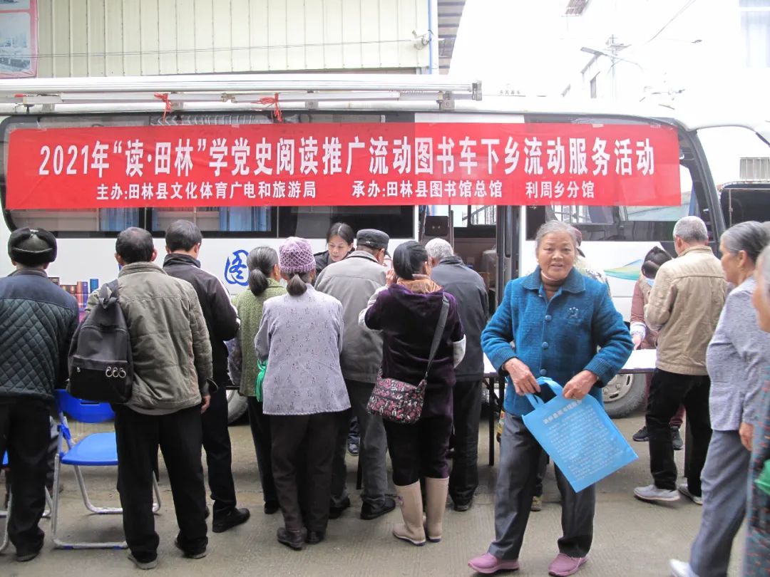 近日,由县文旅局主办,县图书总馆与旧州、平塘、利周等4个分馆承办的“读·田林”学党史阅读推广流动图书车下乡流动服务活动,分别走进旧州、平塘、利周等乡镇开展。