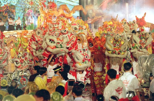 1997年7月1日,上海市在东方明珠电视塔下举行庆祝香港回归祖国文艺焰火晚会。