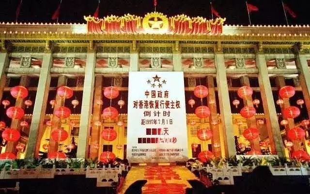 1997年7月1日零点,天安门广场中国政府对香港恢复行使主权倒计时牌标出:距1997年7月1日还有零天,零秒。