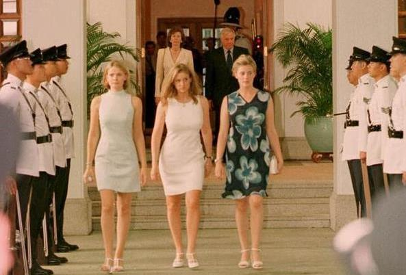 告别仪式结束后,港英当局末任港督彭定康一家人走出港督府,离开了这个居住5年的地方。