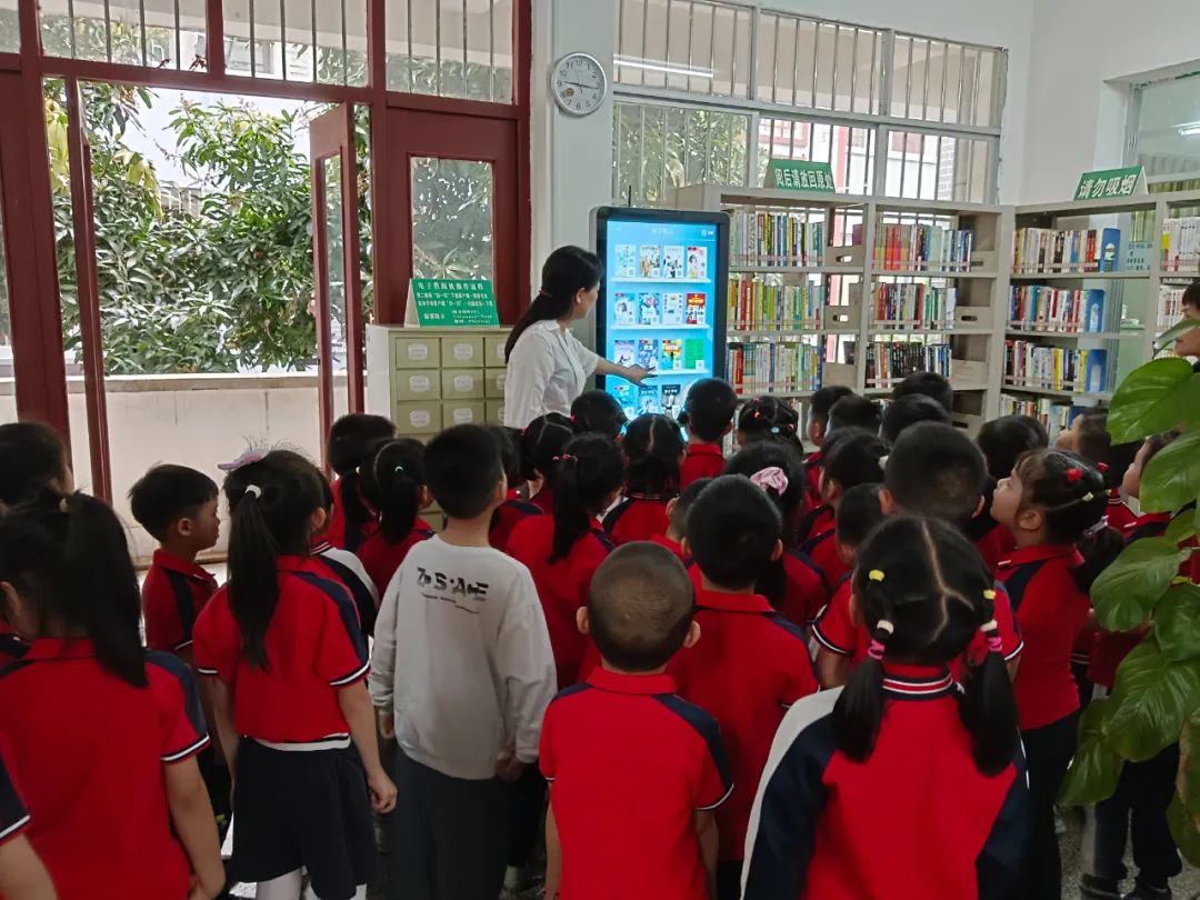 图为 向小读者们介绍一楼数字资源及服务