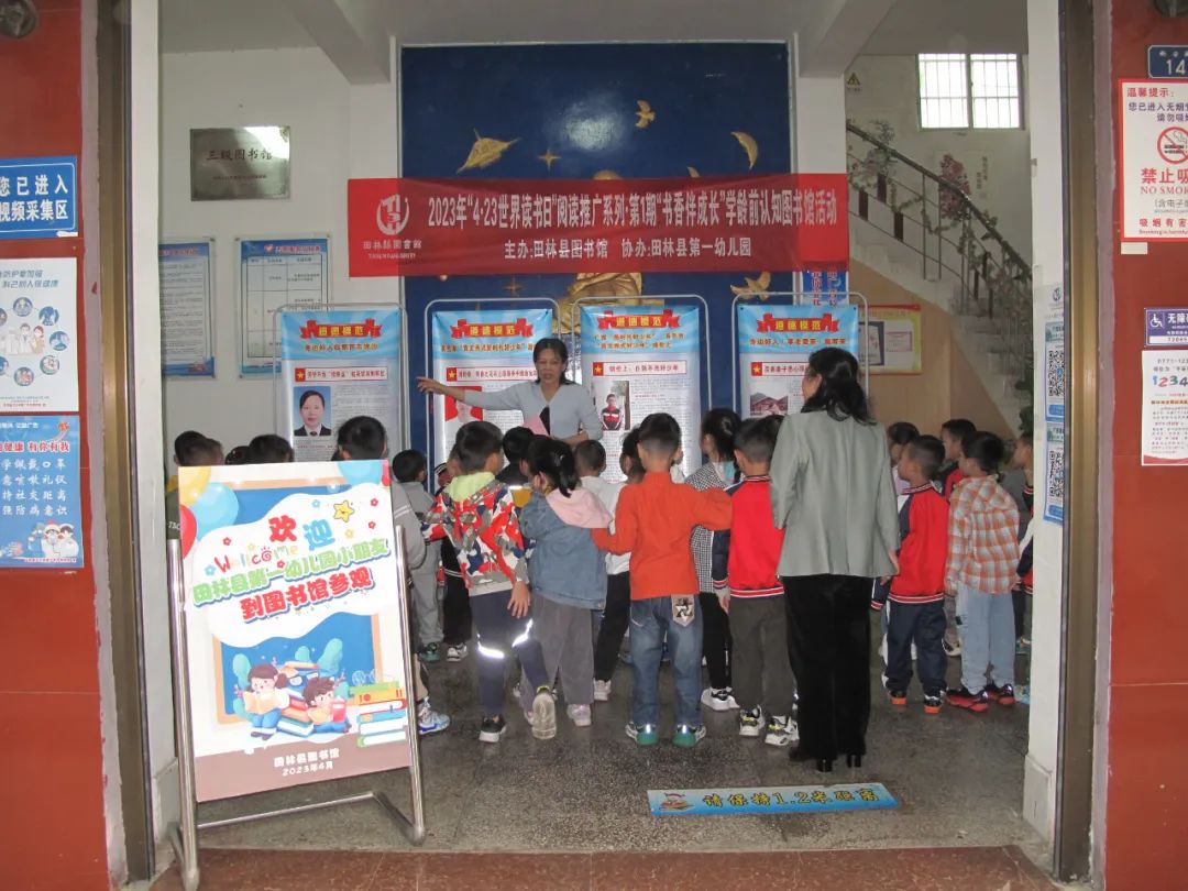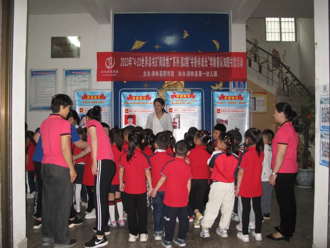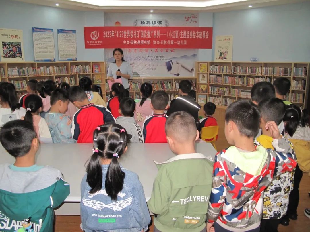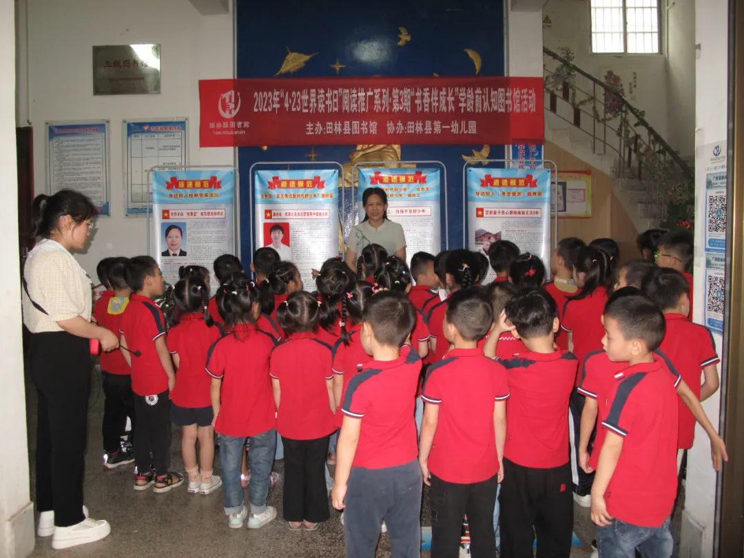 图为 向县一幼大二班小读者介绍图书馆基本情况