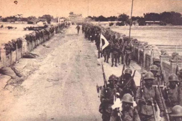 ▲中国军队撤退后,日军通过卢沟桥。(资料图)