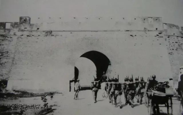 ▲1937年“卢沟桥事变”后的第二天,在宛平城门口警戒的中国守军和入城的民众。