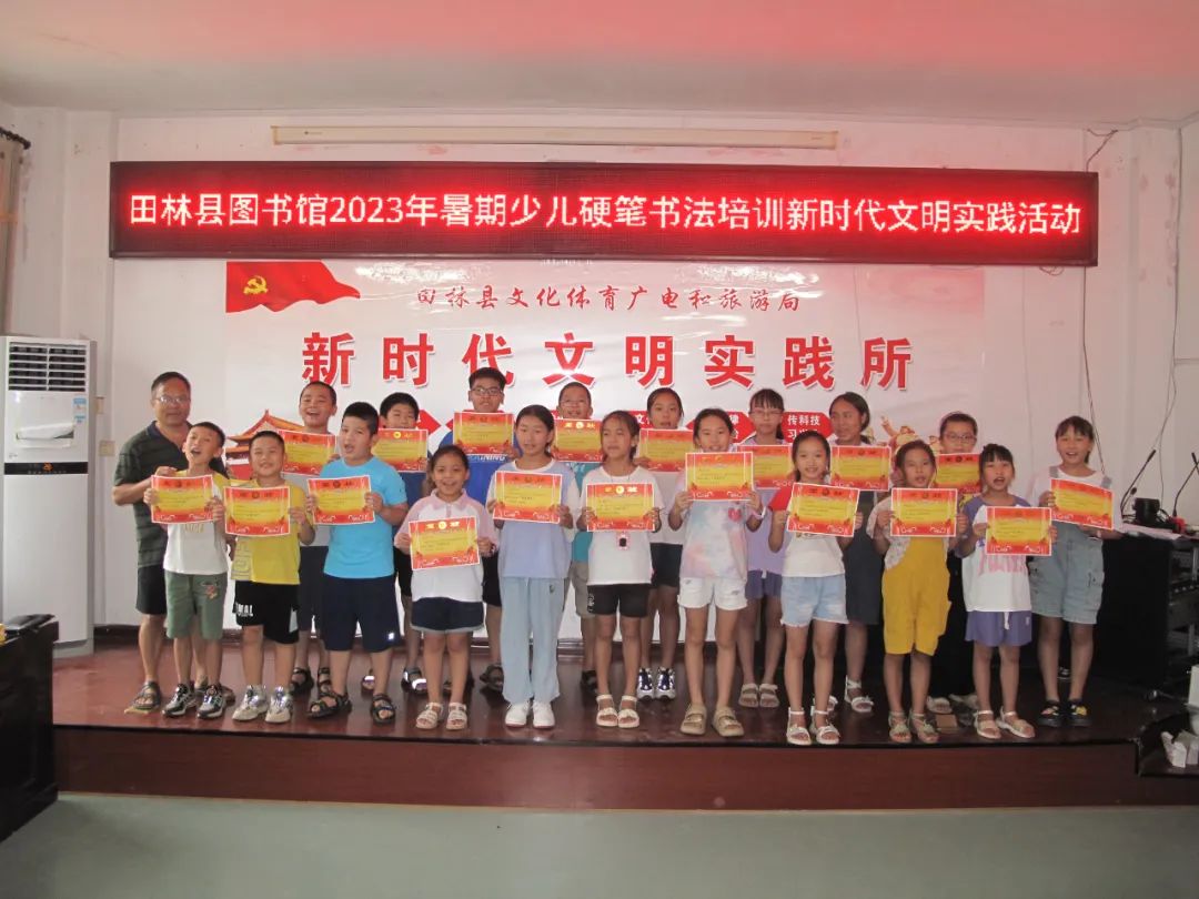 图为2023年少儿硬笔书法培训班“优秀学员”合影