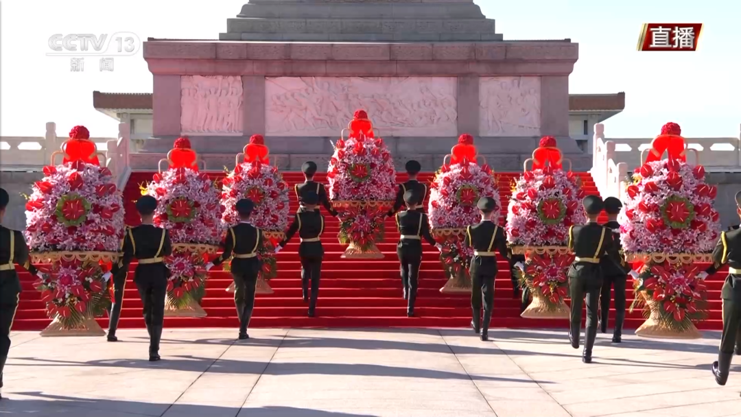 习近平等党和国家领导人向人民英雄敬献花篮。