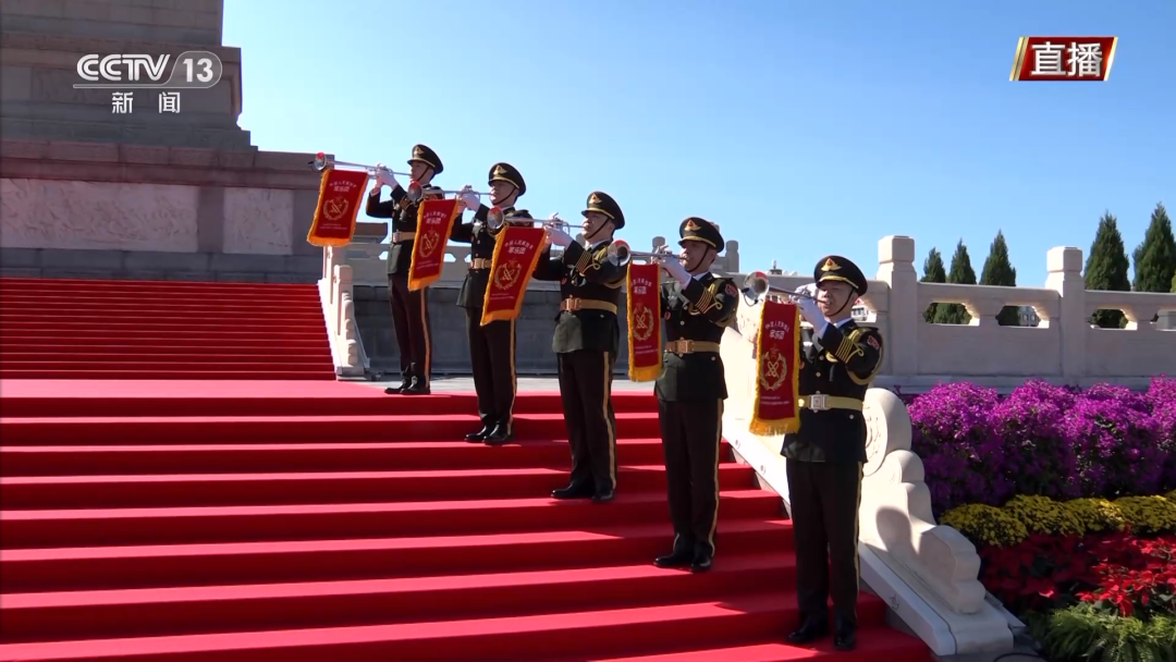仪式现场,中国人民解放军军乐团小号手吹响《烈士纪念日号角》。