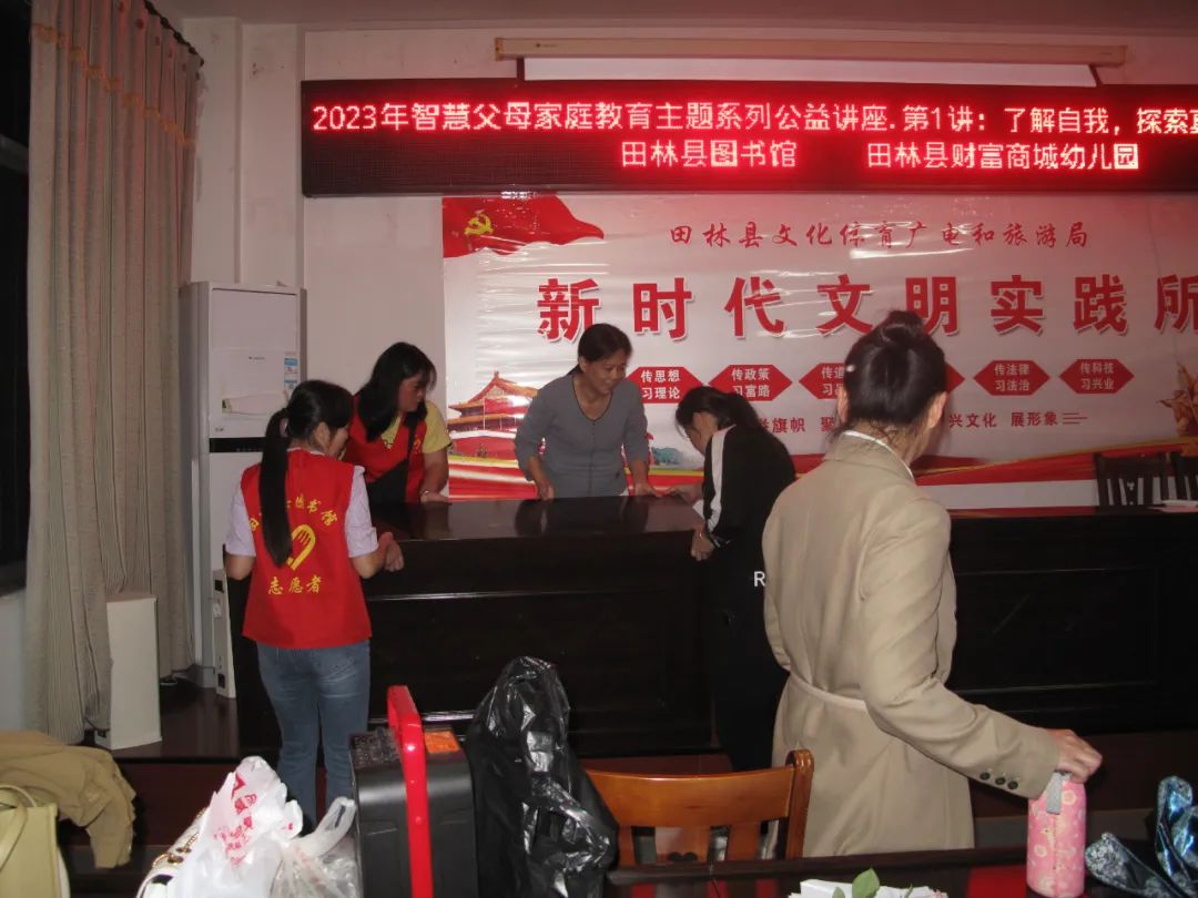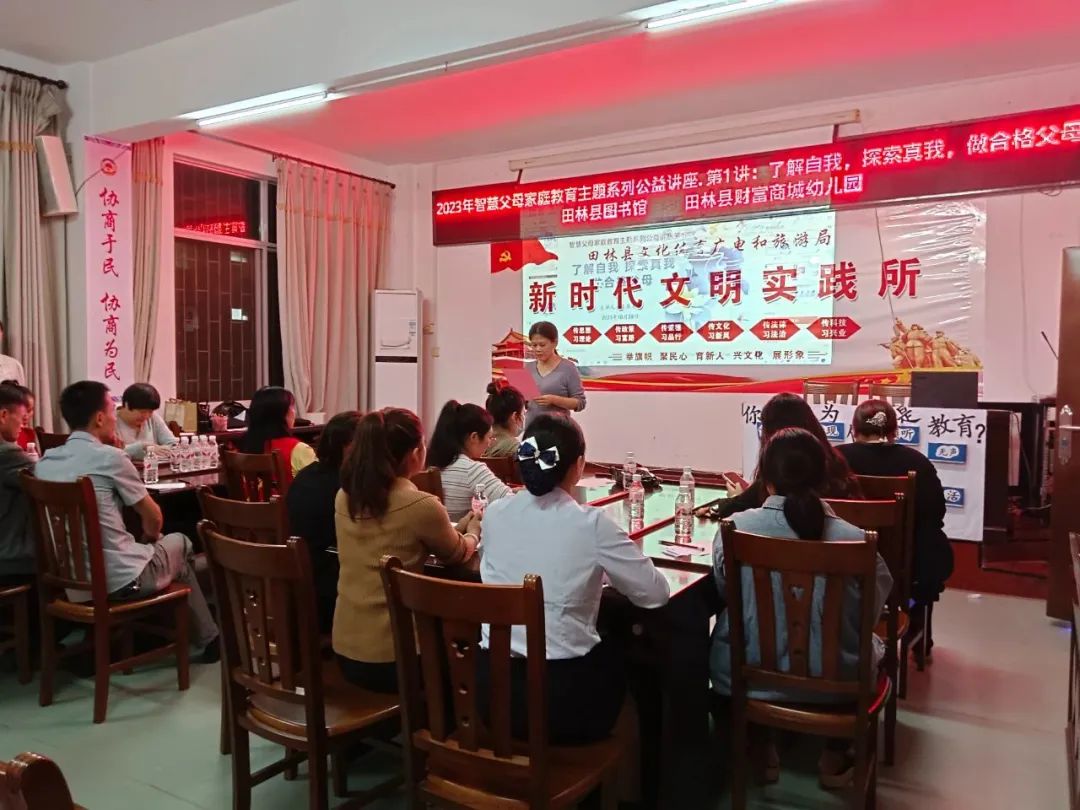 为引导家长们树立正确家庭教育观,提高父母的养育知识、与孩子沟通的技巧,改善亲子关系,从而有利于孩子身心健康成长。10月28日晚,在文化志愿者协助下,田林县图书馆与财富商城幼儿园联合在县图书馆四楼多功能室,开展以“智慧父母 伴孩子成长”为主题教育讲座活动,近50位家长读者参加听课。