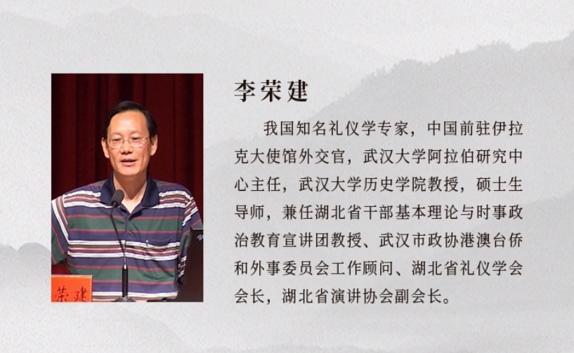 李荣建,男,我国知名礼仪学专家,武汉大学阿拉伯研究中心主任,武汉大学历史学院教授,硕士生导师,中国前驻伊拉克大使馆外交官。李荣建先生多次应邀为湖北省和武汉市的一些大专院校和机关、企业作礼仪讲座。