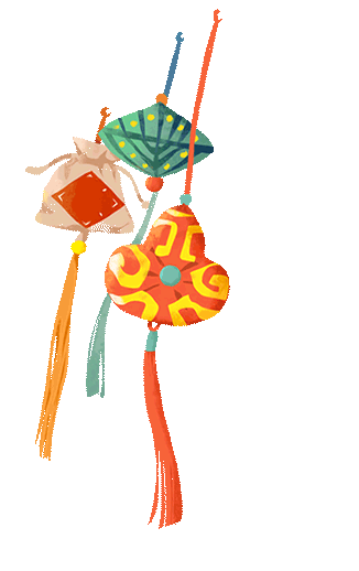 香囊内装有香草,佩戴在身上或挂在房间里,有驱邪避疫的作用。