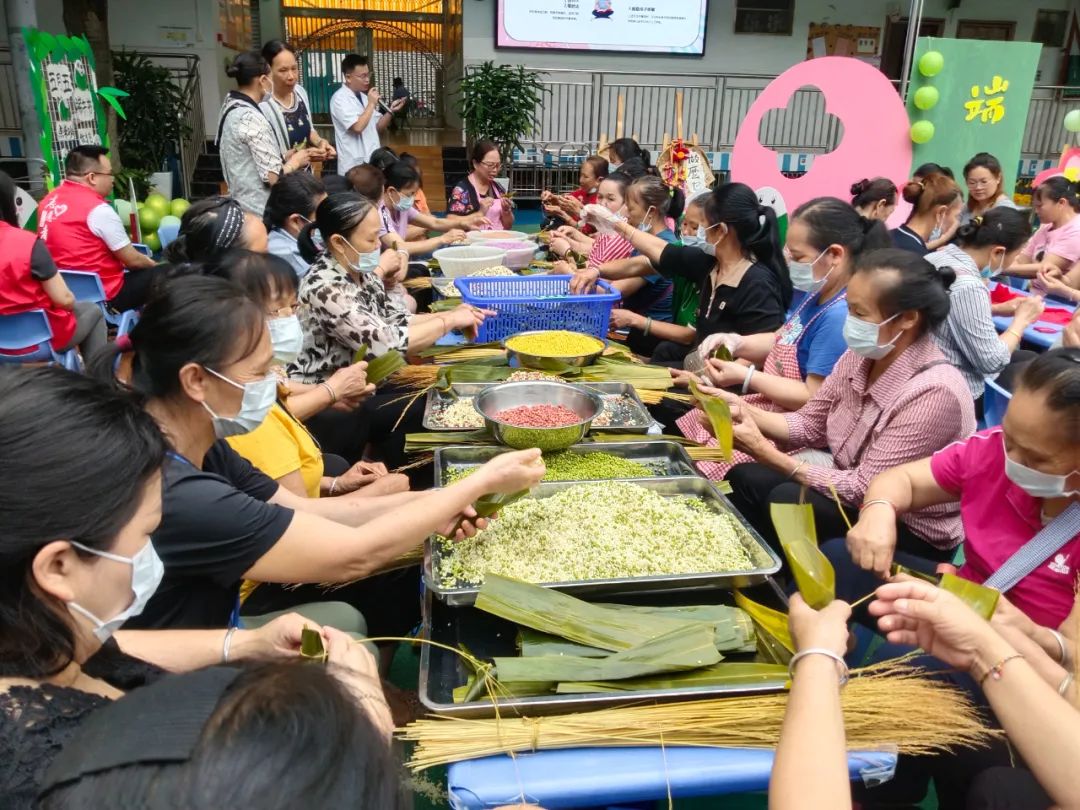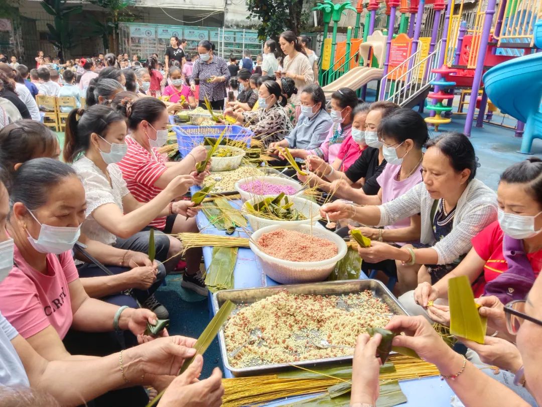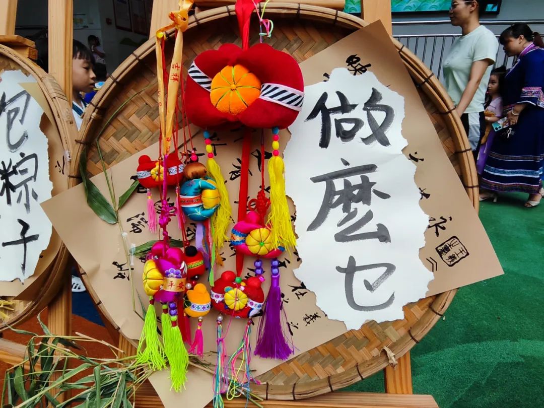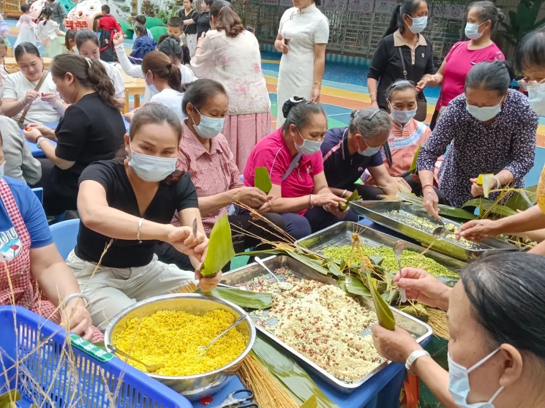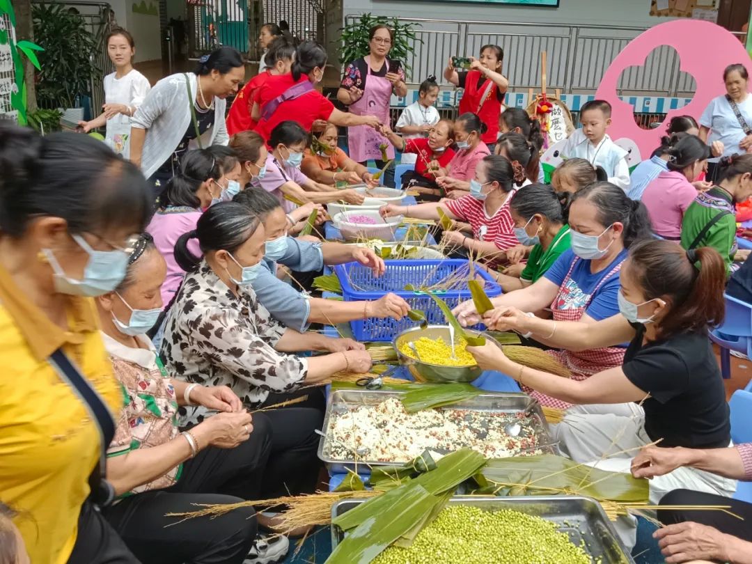 本次活动内容为包粽子、手工制麽乜和香包等端午节传统习俗。活动组由70多位家长志愿者组成,分成吉祥物、香包手工组和包粽子组。