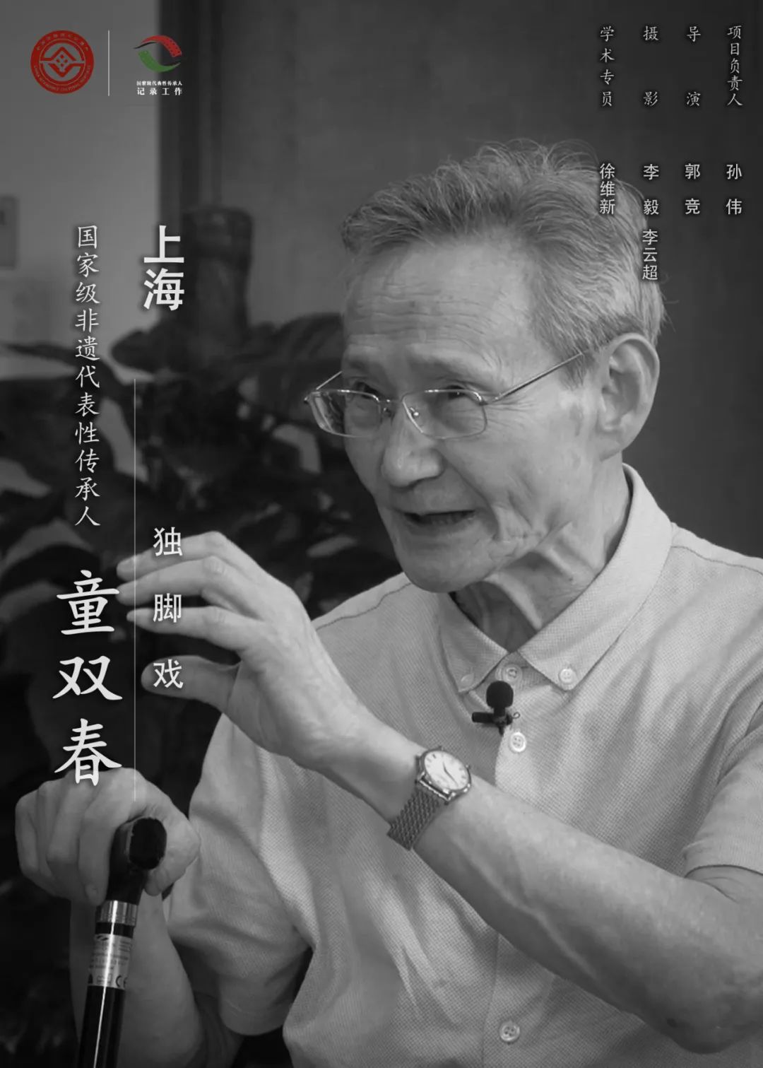 童双春,1934年出生,男,汉族,浙江宁波人,第五批国家级非物质文化遗产代表性传承人,2021年去世。独脚戏又称“滑稽”,作为一种曲艺表演形式,兴于1920年前后,受江、浙、沪一带流行的“小热昏”“唱新闻”“隔壁戏”等说唱形式的影响,善于捕捉生活中的鲜活素材,迅速反映时代和社会特点,具有浓郁的地方特色和平民色彩。童双春于1949年开始学艺,先后拜杨笑峰、姚慕双、周柏春等前辈为师,1960年加入上海人民艺术剧院滑稽剧团。他继承姚慕双、周柏春将“热捧软逗”与书卷气相结合的风格,吸纳朱翔飞幽默滑稽的特色,学习袁一灵的“妙语连珠”,形成自己独特的艺术风格,代表作品有《全体会》《唱山歌》《玲珑塔》等。