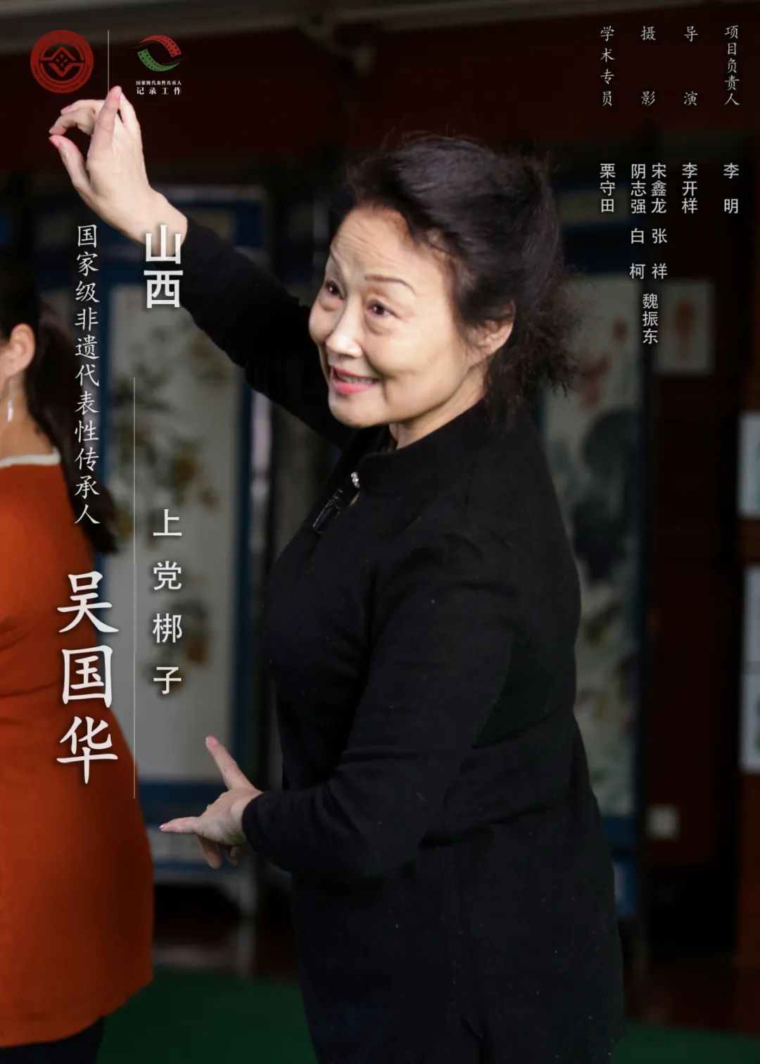 吴国华,1959出生,女,汉族,山西高平人,第三批国家级非物质文化遗产代表性传承人。上党梆子是山西省四大梆子之一,流行于山西东南部,以演唱梆子腔为主,兼唱昆曲、皮黄、罗罗腔、卷戏,俗称“昆梆罗卷黄”。上党梆子的传统剧目有700多个,伴奏乐器主要为巨琴、二把、呼胡“三大件”,角色行当主要有生、旦、净、丑四种。吴国华出生于艺术世家,唱、念、做、打深得父辈真传。在数十年的舞台生涯中,她扮演了众多戏曲人物形象,扮相端庄大方,唱腔清脆俏丽,较高代表角色有《寄刀》中的林黑娘、《三关排宴》中的萧银宗等,曾获中国戏剧梅花奖等多个奖项。