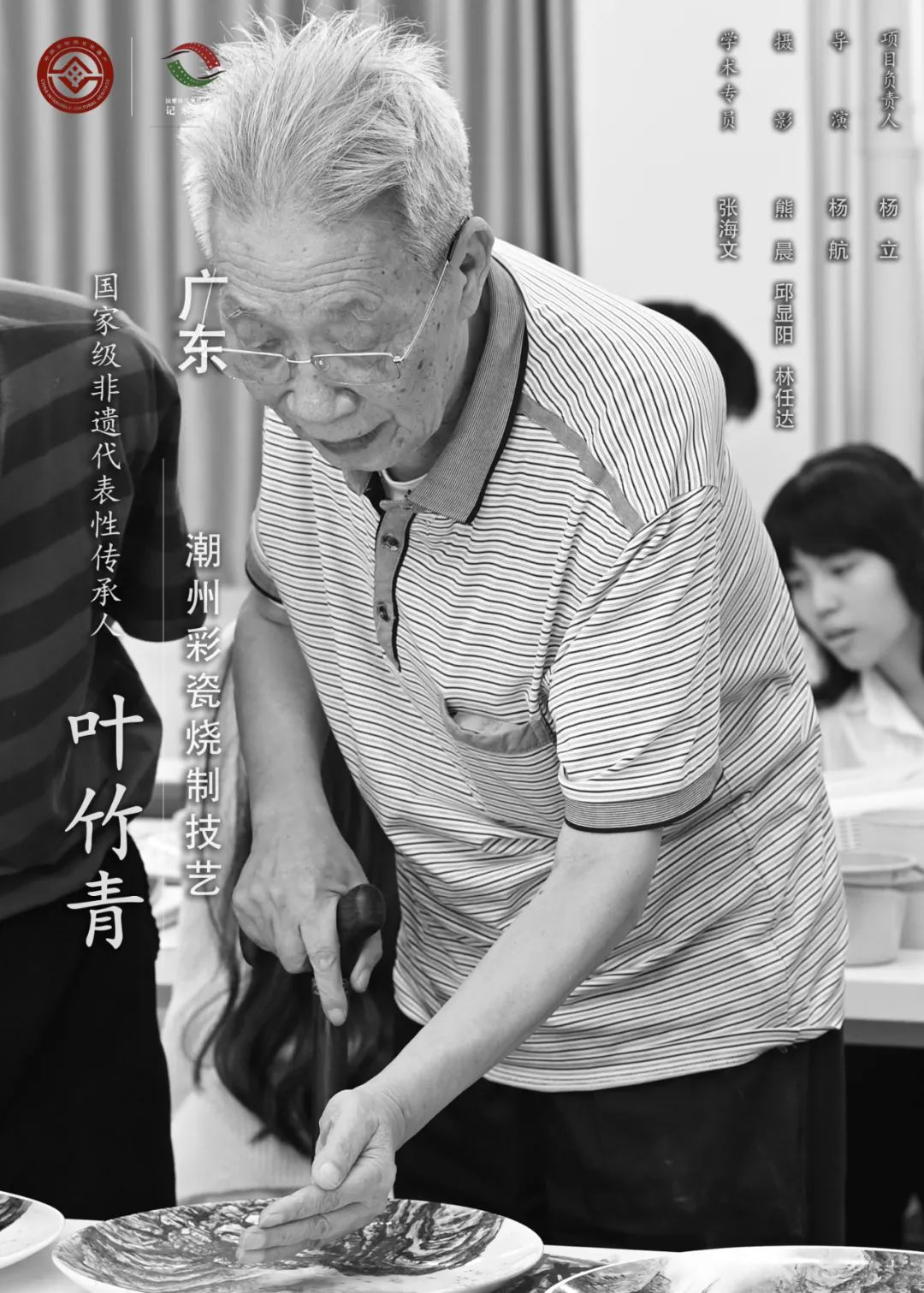叶竹青,1935年出生,男,汉族,广东潮州人,第五批国家级非物质文化遗产代表性传承人,2022年去世。潮州彩瓷烧制技艺运用新彩颜料,结合传统釉上彩绘艺术,运用国画技法,并与潮州民间工艺融合而成。叶竹青自小师从著名陶瓷艺人沈建初先生,1959年进入广东省枫溪陶瓷工业研究所工作,从事陶瓷器皿和装饰设计。其作品以自然、抒情为基调,用工笔新彩形式描绘,着色细致入微,运笔秀逸,注重虚实结合,作品造型装饰疏密有间、轻重有别,富有立体感。他创新了釉上堆彩工艺,引领了潮州彩瓷的新风尚。他主持设计的《友谊》通花瓶作为国礼被赠与朝鲜,《丹凤朝阳》瓷花篮在多个国家和地区展览交流。