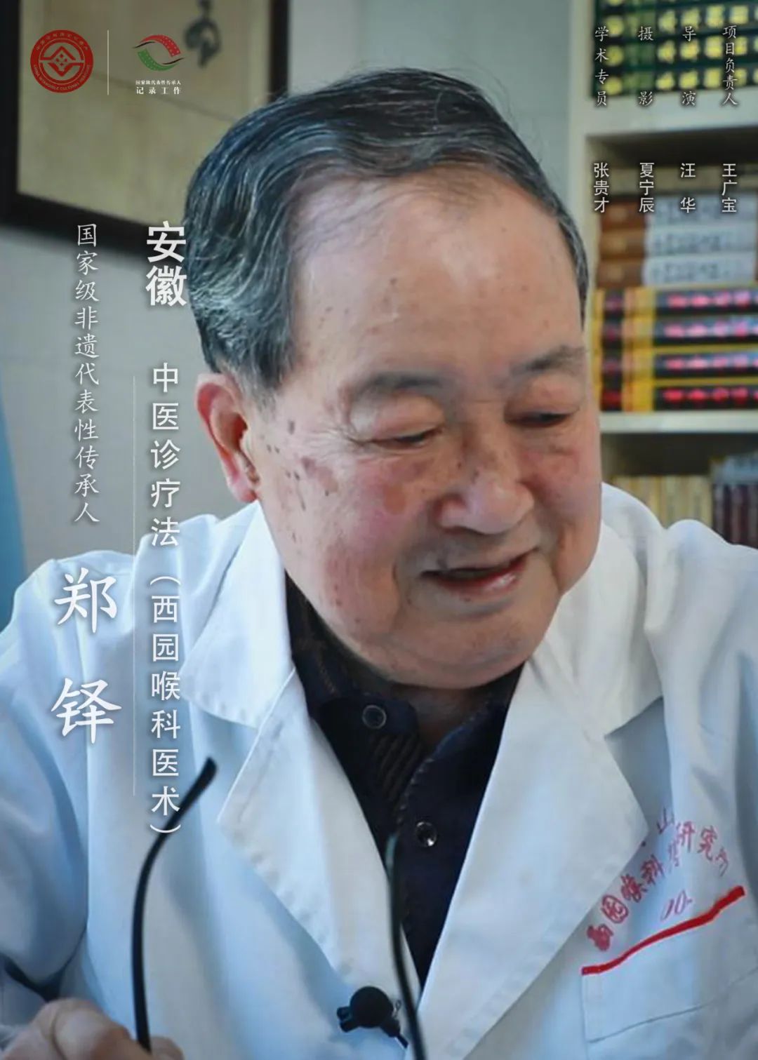 郑铎,1936年出生,男,汉族,安徽歙县人,第五批国家级非物质文化遗产代表性传承人。西园喉科为清代五大名医之一、歙县郑村郑氏二十四世祖郑以显所创,因郑氏祖宅号称“西园”而得名。西园喉科治医严谨,名医辈出,至今已有十二代传人。第三代传人郑梅涧于清乾隆年间创制的“养阴清肺汤”,成为当时治疗“白喉”的良药。郑铎为西园喉科第十一代传人。他从事中医喉科50多年,全面继承西园喉科的内外治法及针灸疗法的烙法,吸收现代中医喉科学各流派治疗方法,不断完善自身的治疗体系,使诸多口腔咽喉疑难疾病得到有效治疗,特别在喑哑一症的治疗上独树一帜。他在祖辈“养阴清肺”法的基础上,结合多年临床,独创“轻可袪实”法,对声带小结、声带息肉、声带肥厚等症疗效斐然。他还整理了郑氏喉科历代著作,获得多项科技成果奖。