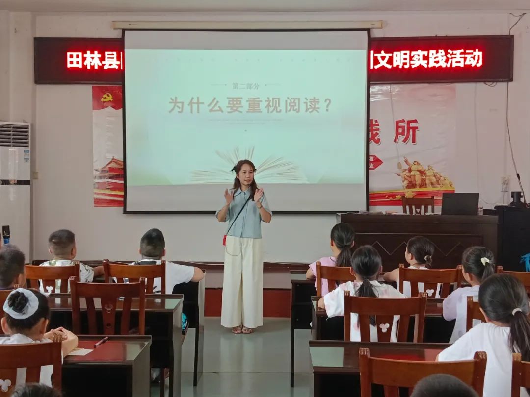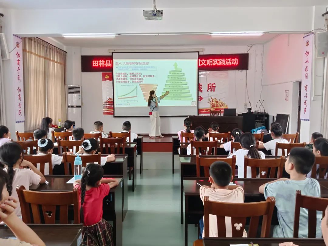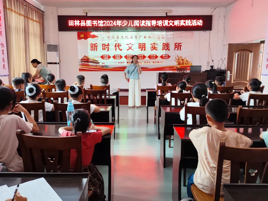 7月28日下午,县图书馆以“书香润暑期 阅读伴成长”为主题,在四楼多功能室举办暑期少儿阅读指导培训活动,来自田林县城各小学校的学生及家长50余位读者参加活动。