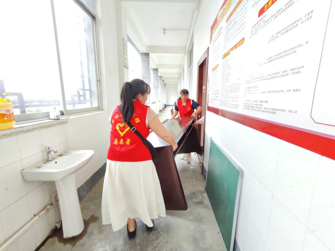 图为志愿者场地布置
