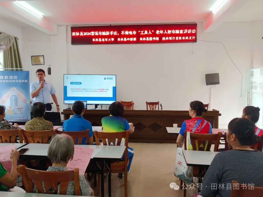 为进一步提高老年人的防诈骗意识,提高老年人的防诈骗能力,桂林银行百色田林支行向生眺主讲师,从“电信诈骗”定义、类型以及防范电信网络诈骗等进行释义讲解,并围绕金融诈骗的常见类型,通过身边典型的金融诈骗案例向老年人讲解诈骗的常见形式和防骗方法,生动形象、深入浅出地介绍了简单、实用、易懂的老年人防诈骗知识,引导老年人树立正确的金融观念,要时刻保持警戒心理,对可疑信息“不听、不信、不转账”,增强自我保护能力,守护自己的“钱袋子”。宣讲内容贴合实际,现场老年人纷纷表示十分受用,将会把今天在讲座中学到的知识传达给更多人,共同筑牢预防养老诈骗的“防火墙”。