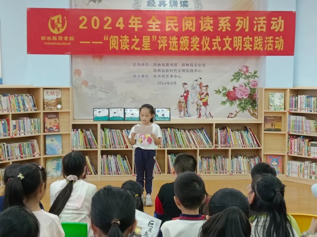 自2017年起,县图书馆每年开展“阅览之星”评选表彰活动,今年是第七届,几年来共评选奖励60余位“少儿阅读之星”。通过树典型立榜样,激励更多的少儿加入到阅读队伍中来,营造浓厚的书香氛围,为精神文明书香田林建设添砖加瓦。