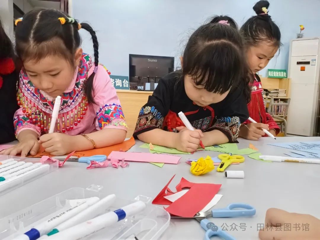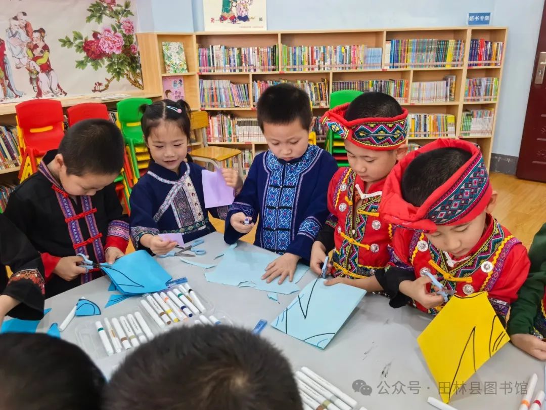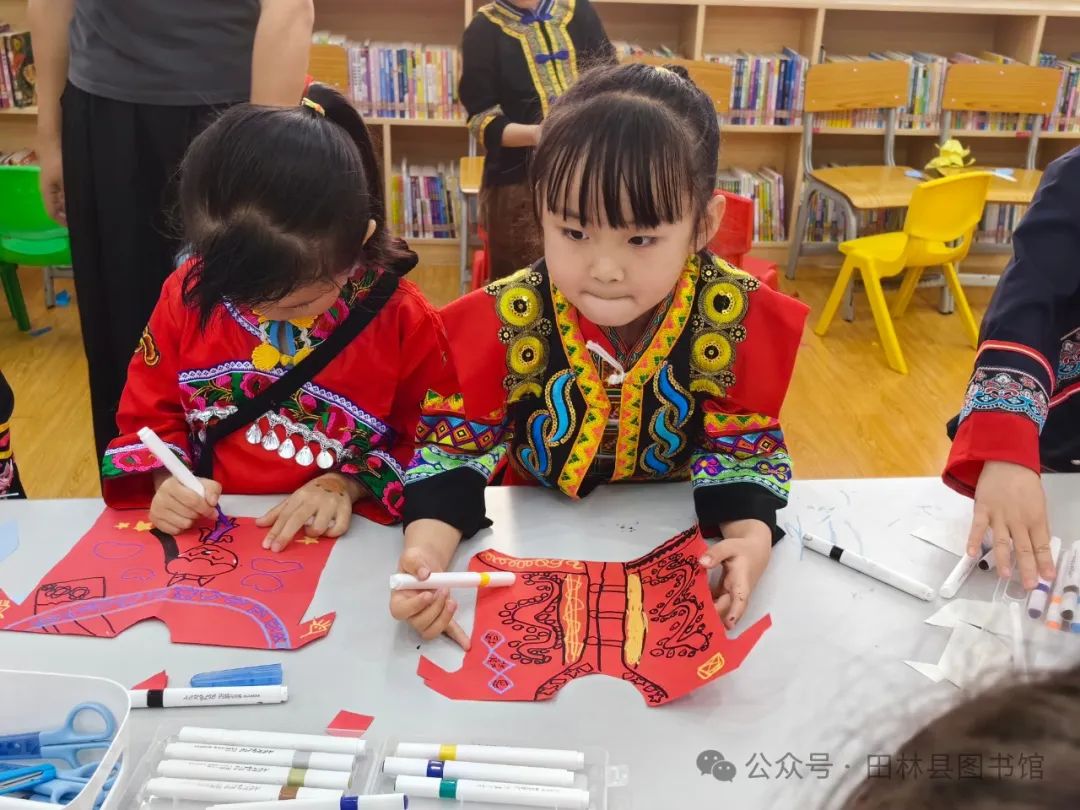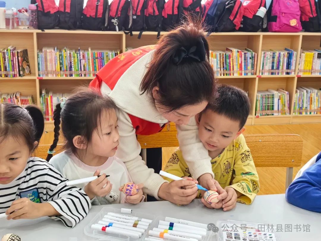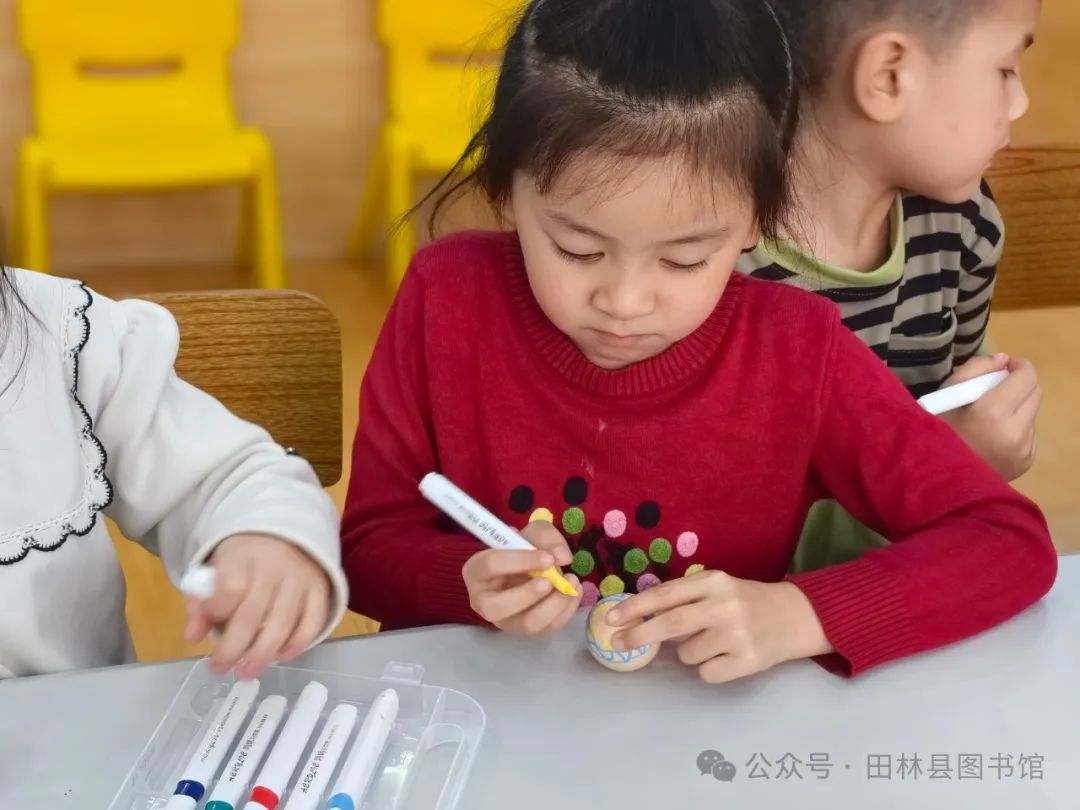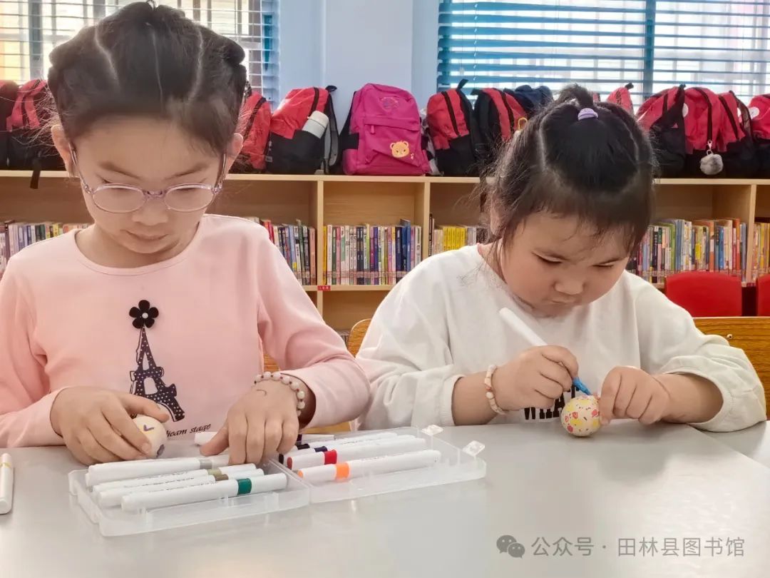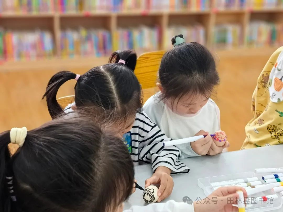 为了让幼儿了解 “广西三月三” 传统节日文化,在传统文化熏陶下成长,弘扬民族文化,激发幼儿热爱家乡、民族的情感与积极向上的精神,2025年3月24日至26日,田林县图书馆和田林县第一幼儿园在少儿阅览室联合开展2025年“多彩三月三 共筑民族情”绘本故事会暨传统民俗系列活动。系列活动内容有:2025年“我们的节日·三月三”主题绘本故事会暨手绘彩蛋活动、2025年铸牢中华民族共同体意识主题阅读活动、2025年“多彩三月三 共筑民族情”主题绘本故事会暨绣球手工体验活动。1. “我们的节日·三月三”主题绘本故事会暨手绘彩蛋活动场景