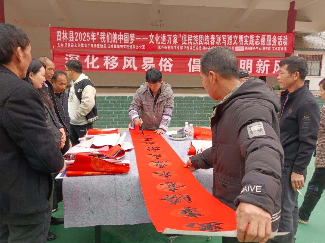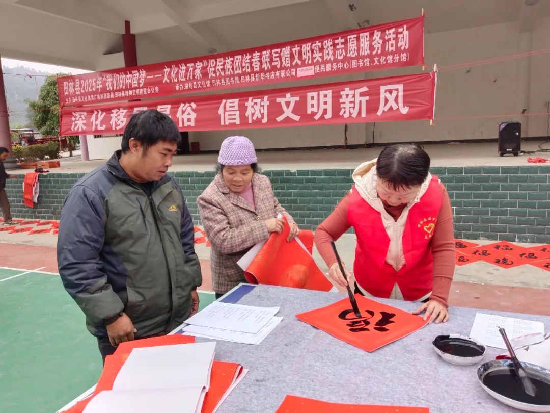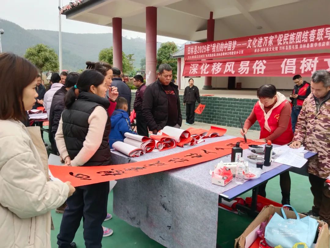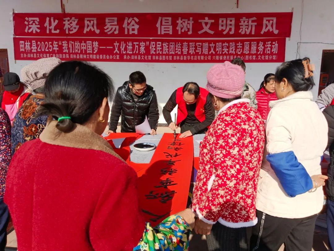 通过现场书写春联和‘福’字,将新年的祝福送入千家万户,给群众送上新春美好祝愿,营造和谐、吉祥的节日氛围,传承中华传统文化,促进民族团结一家亲,深受群众的欢迎与好评。